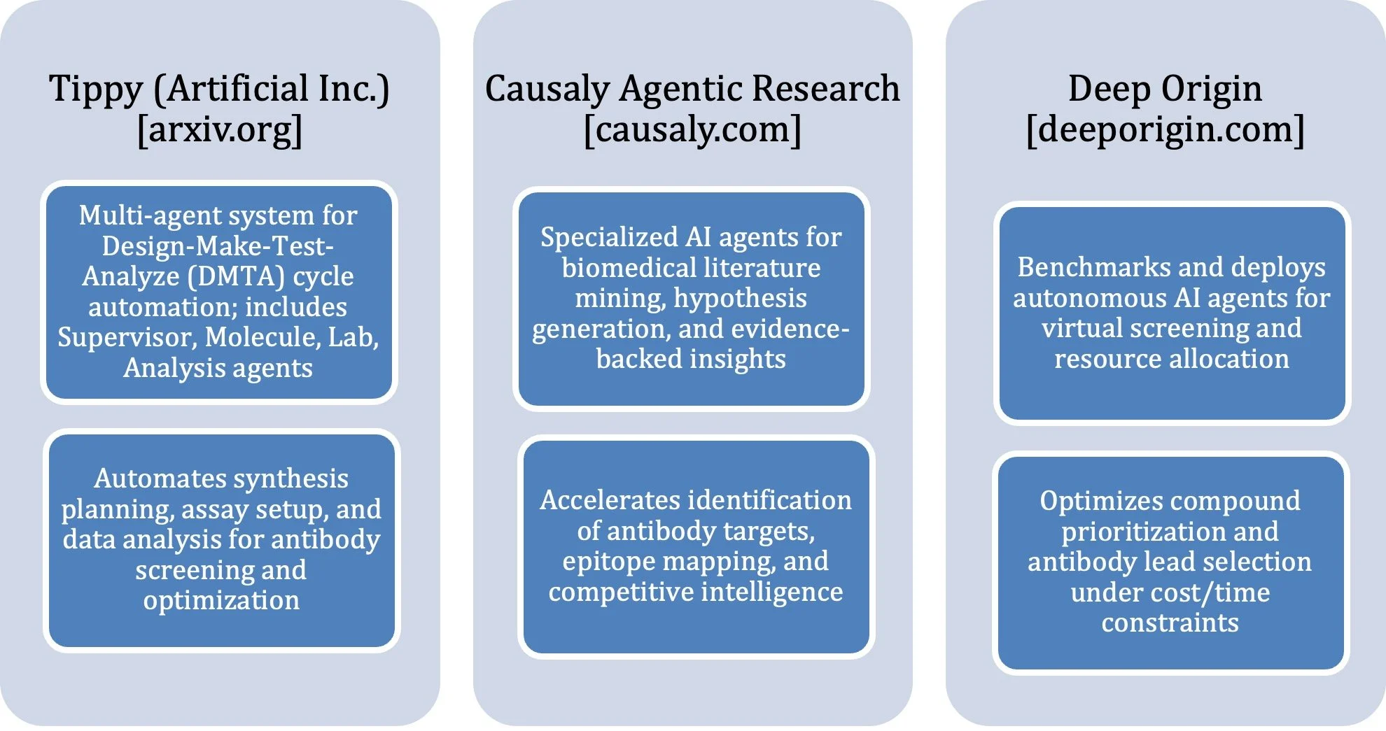 Seal, S.; Huynh, D L.; Chelbi, M.; et al. AI Agents in Drug Discovery. arXiv. 2025, arXiv:2510.27130. DOI:10.48550/arXiv.2510.27130