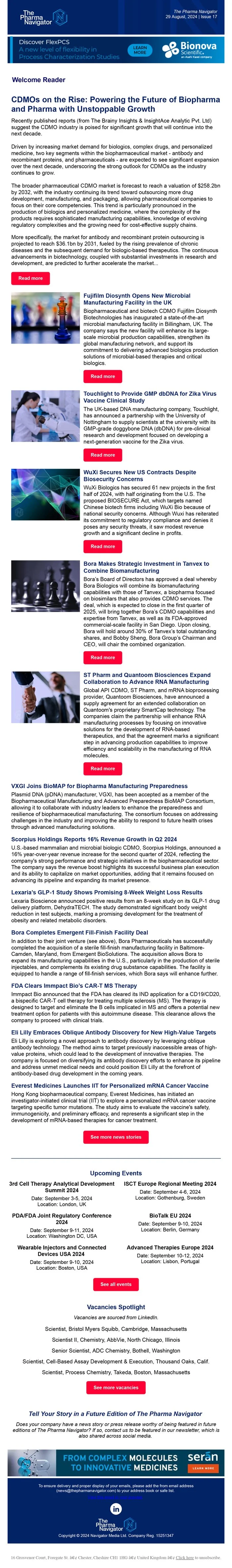 CDMO Market Set for Unprecedented Growth Across Pharmaceuticals, Antibodies & Recombinant Proteins